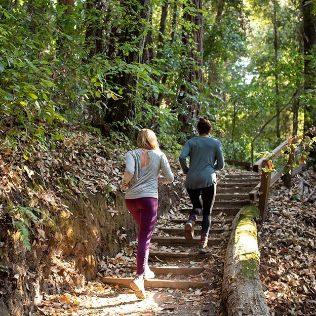The 1,400-square-foot Fitness Center is well-equipped with weights, ellipticals, stationary bikes, a treadmill, and more. Work out inside with a view of the redwoods or bring props onto the deck to stretch and exercise in the fresh air. The Fitness Center overlooks the Redwood Amphitheater and is in close proximity to the lower campus trails.
